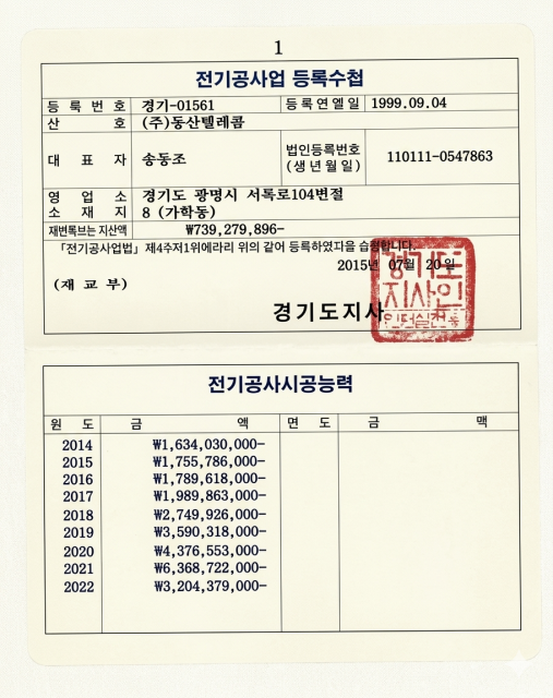 전기공사업등록증