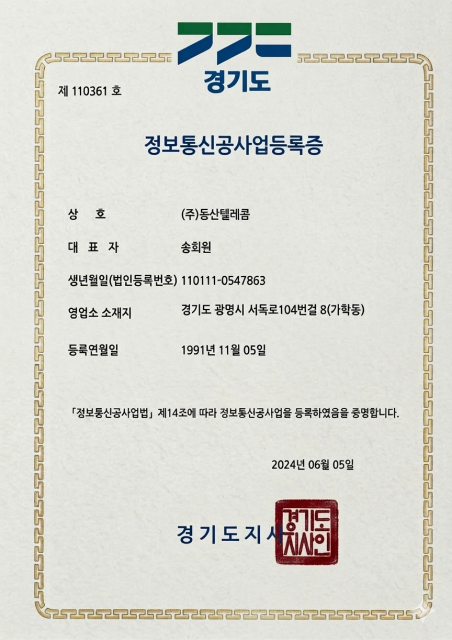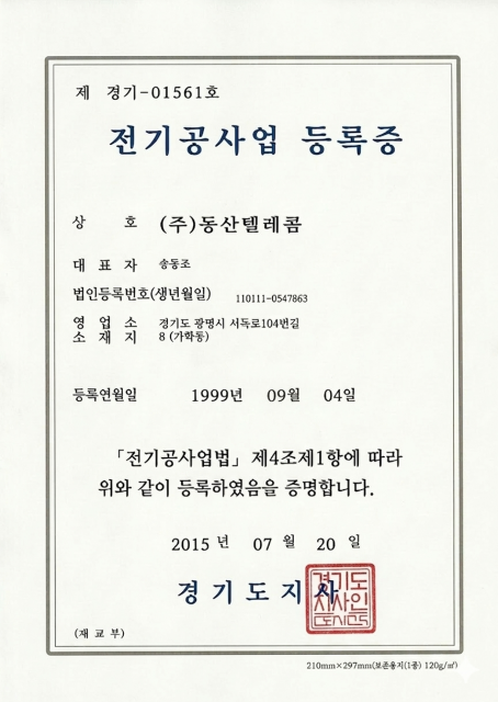 정보통신공사업등록증